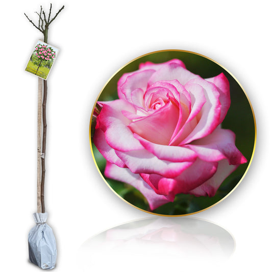 Les rosiers sur tige ou mini tige sont parfaits pour servir de décoration originale de votre terrasse, balcon ou jardin !